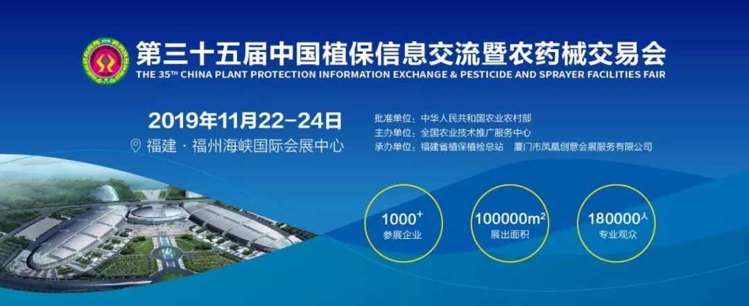 中國(guó)植保信息交流暨農(nóng)藥械交易會(huì)(簡(jiǎn)稱“中國(guó)植保雙交會(huì)”、“全國(guó)植保會(huì)”)至今已成功舉辦34屆,是行業(yè)內(nèi)規(guī)模大、人氣旺、影響深遠(yuǎn)的中國(guó)農(nóng)業(yè)5A級(jí)專業(yè)展,在農(nóng)化行業(yè)和植保系統(tǒng)中享有極高聲譽(yù),堪稱國(guó)際農(nóng)化品牌展。 第35屆“中國(guó)植保雙交會(huì)”將于2019年11月22日至24日在福州海峽國(guó)際會(huì)展中心舉行!大會(huì)落戶榕城,助力南方市場(chǎng)!
